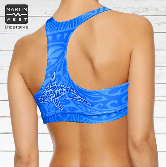 Female Tattoo Shark Paddle/swim reversible Crop Top