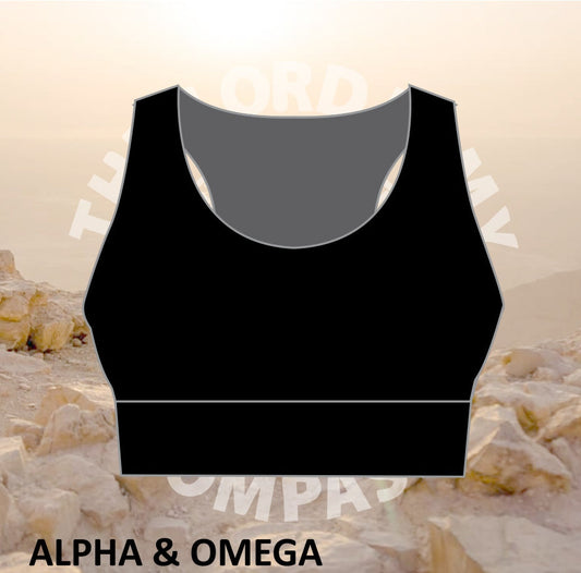 ALPHA AND OMEGA CHILD OF GOD Ladies Active Crop Top Reversible-Black