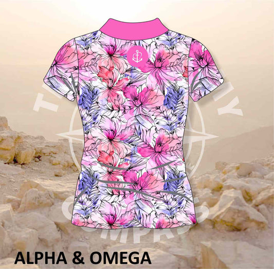 Alpha and Omega Watercolor Floral Ladies Golf Shirt
