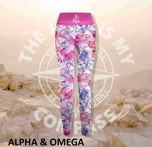 Alpha And Omega Floral Faith Print Athleisure Tights