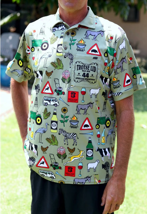 Add a touch of class to your wardrobe with our 44 Suid Afrika Printed Golf Shirt.
