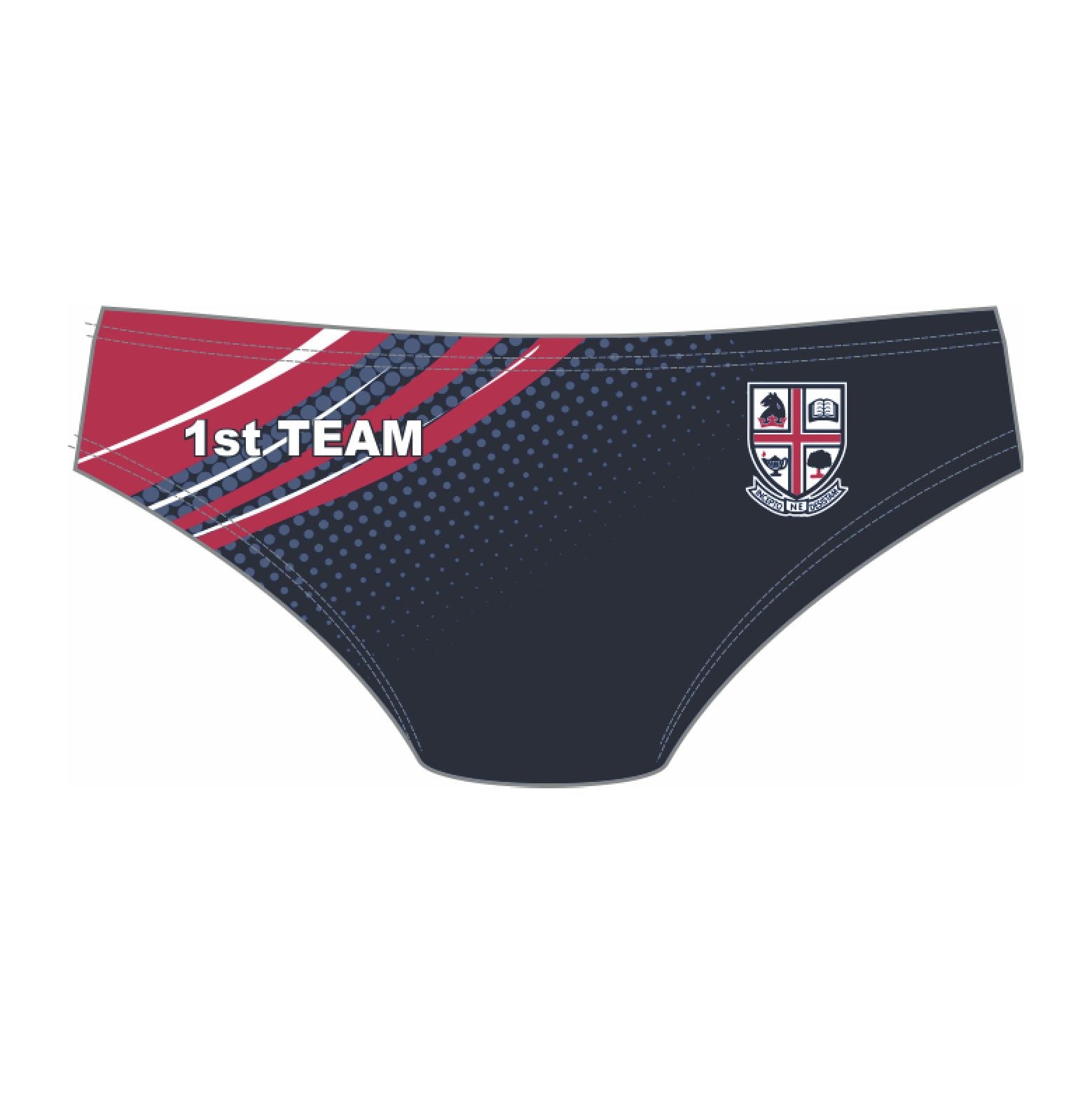 PLEASE NOTE FIT SAMPLES ARE AVAILABLE AT THE SCHOOL SHOULD YOU OPT NOT TO TRY THE FIT SAMPLES WE WILL NOT OFFER RETURNS AS WE MANUFACTURE TO ORDER.Westville First Team Waterpolo Brief, sublimation printed on poly spandex with black nylon knit inner lining.